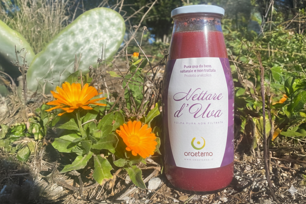 Il nettare d’uva è un prodotto analcolico e non filtrato, confezionato in vasetto di vetro da 720 ml per preservare intatta tutta l’autenticità del frutto.